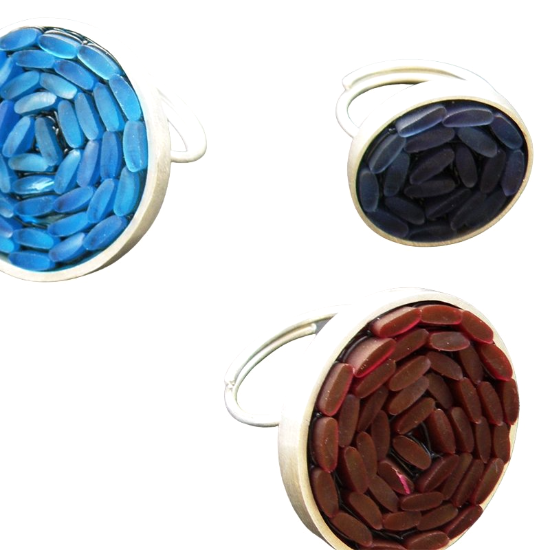 Pedacinhos de silicone que parecem grãos de arroz.