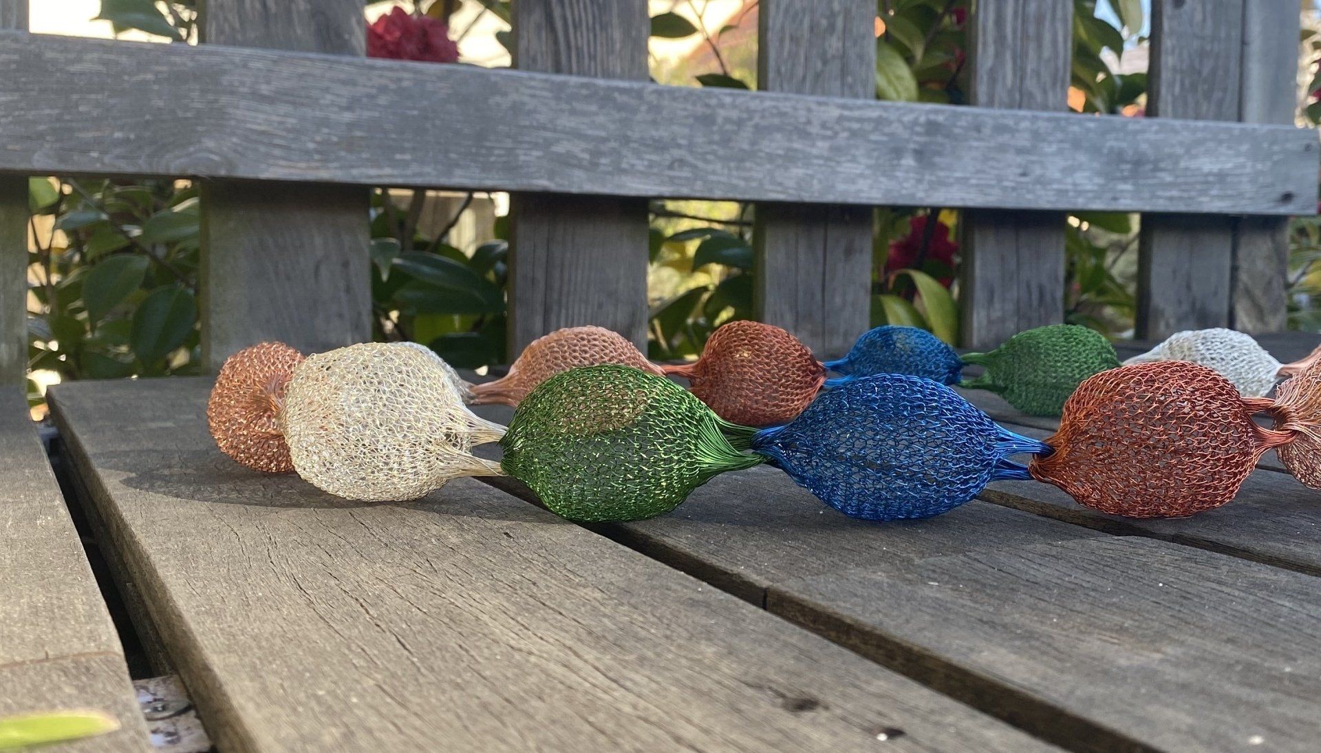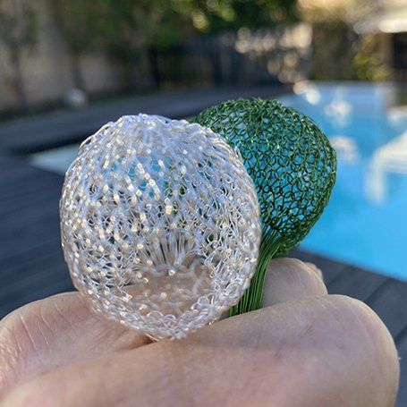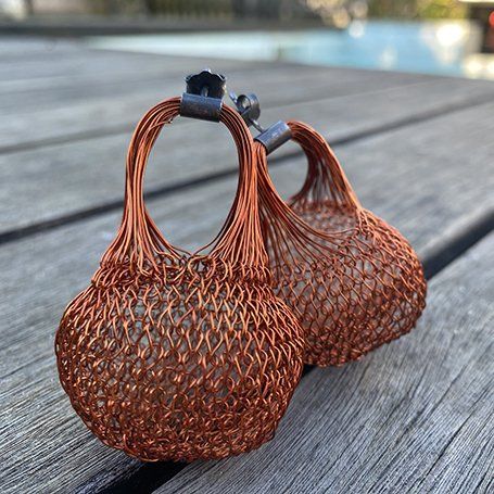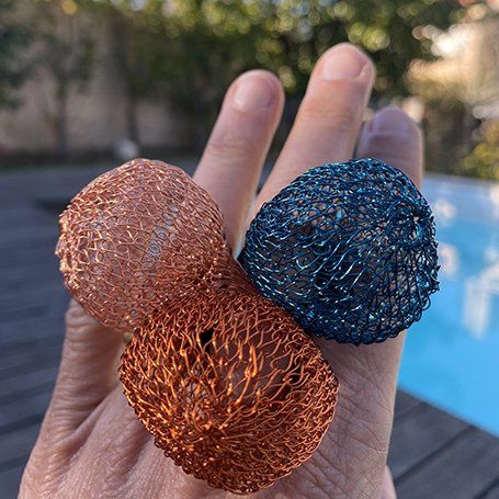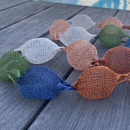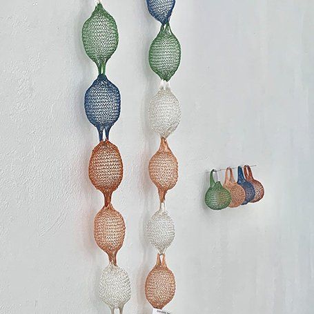 Os fios coloridos do cobre anodizado entrelaçam-se, originando formas leves, esféricas, que remetem para os balões de S. João.