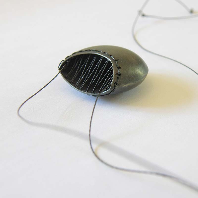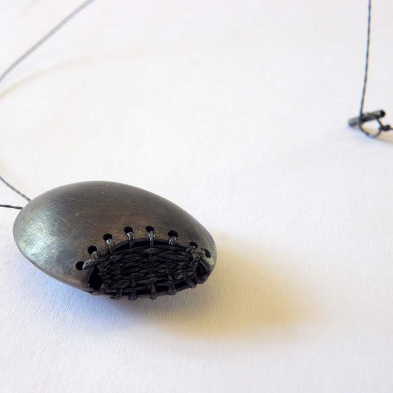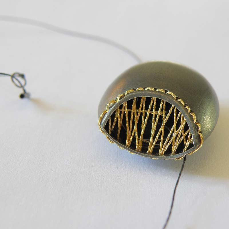 Pequenas bolsinhas de prata, bordadas com diferentes tipos de fio,