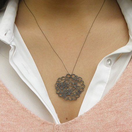 Neste projeto, para reinterpretar esta técnica, utilizando-a como meio expressivo, houve que refletir, procurando compreender a delicadeza da sua principal origem matérica – o fio – para re-introduzir leveza nas jóias a criar.